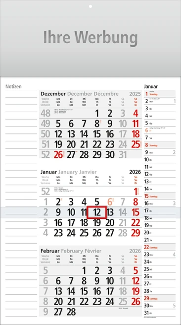 3-Monats-Kalender, Ausgabe 2027