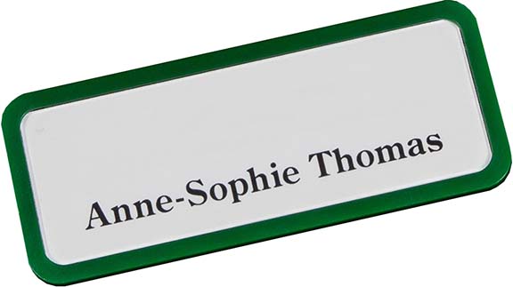 Der extra starke Magnet-Clip garantiert den festen Sitz an Hemd, Sakko oder Arbeitsjacke ohne dabei die Textilien zu beschädigen. Name und/oder Logo wird auf Papiereinleger gedruckt und ist bei Bedarf jederzeit austauschbar. Die Einleger kommen auf perforierten DIN A4 Druckbögen. Die farblichen Varianten der Namenschilder können für die einfache Unterscheidung von Abteilungen genutzt werden, z.B. Verkauf, Service, etc.extra starker Magnet garantiert einen festen Sitz an Hemd oder Sakko; der Mitarbeitername wie auch ein Logo werden auf den Papiereinleger gedruckt; die Einleger kommen auf perforierten Druckbögen; Abteilungen können durch entsprechende farbige Varianten zugeordnet werden