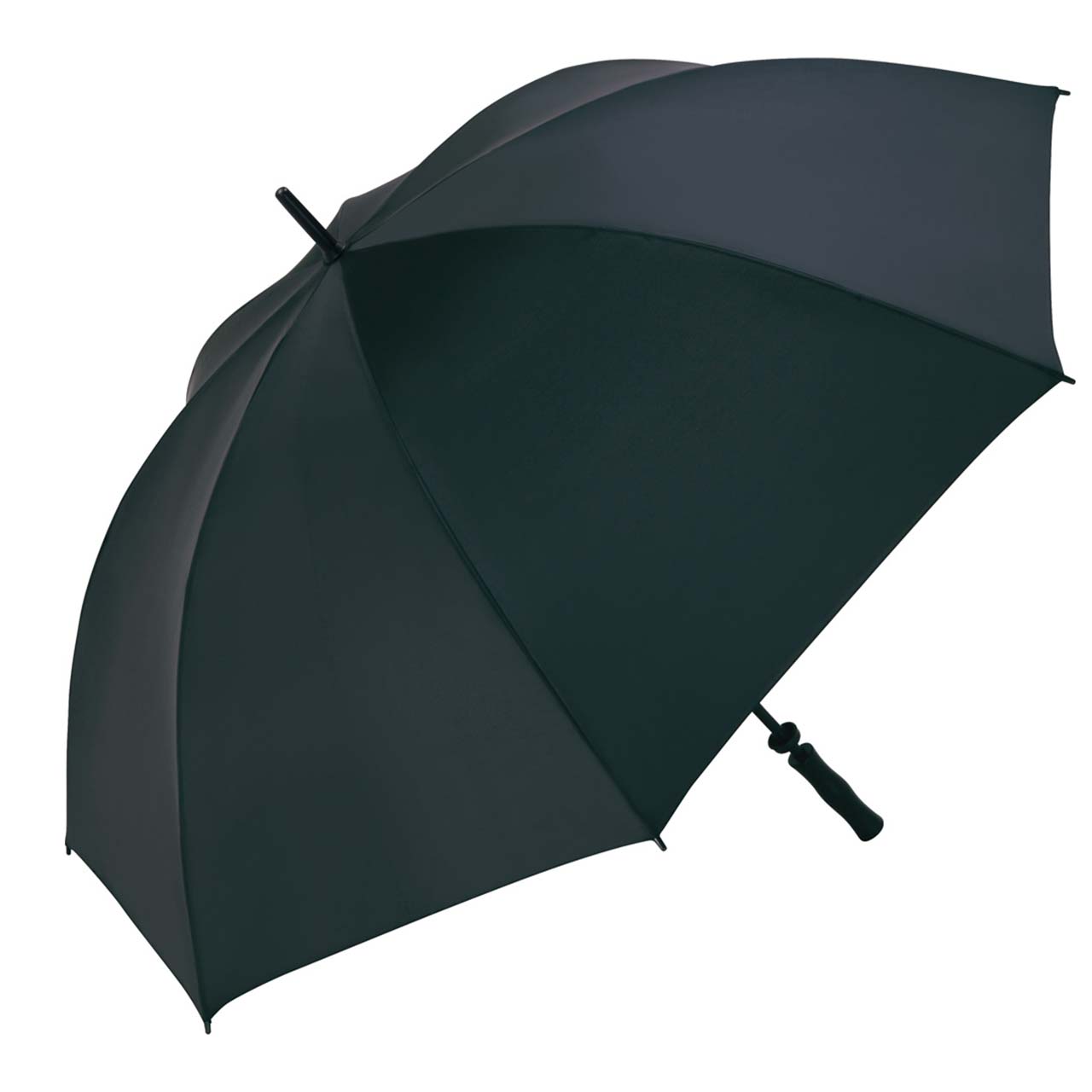 14 mm starker, schwarz galvanisierter Stahlstock, schwarze Fiberglasschienen und schwarze Kunststoffspitzen, Nylon-Bespannung und "windproof"-Eigenschaften.