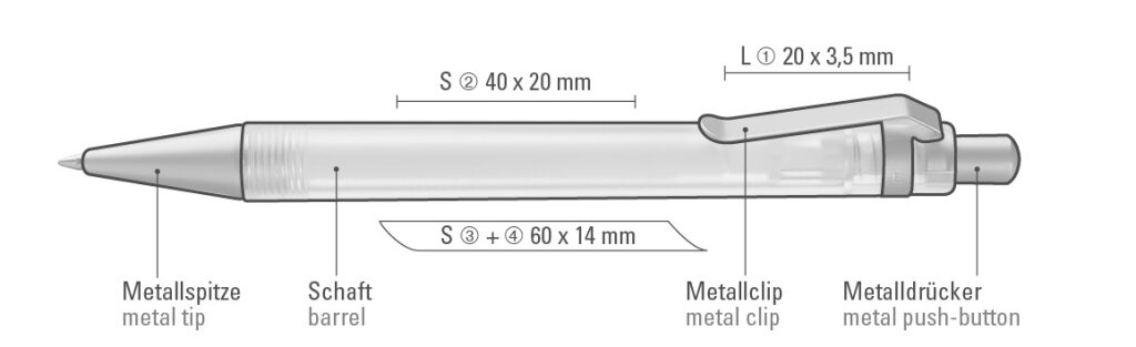 Für ein optimales Druckergebnis empfehlen wir bei einigen farbigen, transparenten und gefrosteten Kugelschreibern den Vordruck eines weißen Untergrunds, da die Druckfarbe je nach Auswahl nicht 100% deckend sein kann.