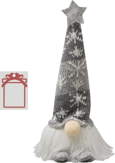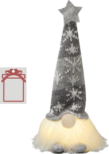Weihnachts-Wichtel Emil mit Licht mit Tampondruck - grau
