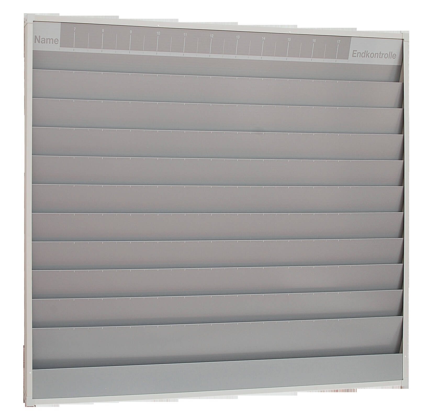 Flexible Zuordnung nach Mitarbeiter oder Arbeitsbereich; Tagesplanung nach Zeiteinteilung möglich (7:00 - 17:00 Uhr); Planungsbahnen durchgehend befüllbar; Tafeln mit Breite 1.580 mm mit zusätzlichem Ablagefach; Schmutzabweisende Oberfläche.
